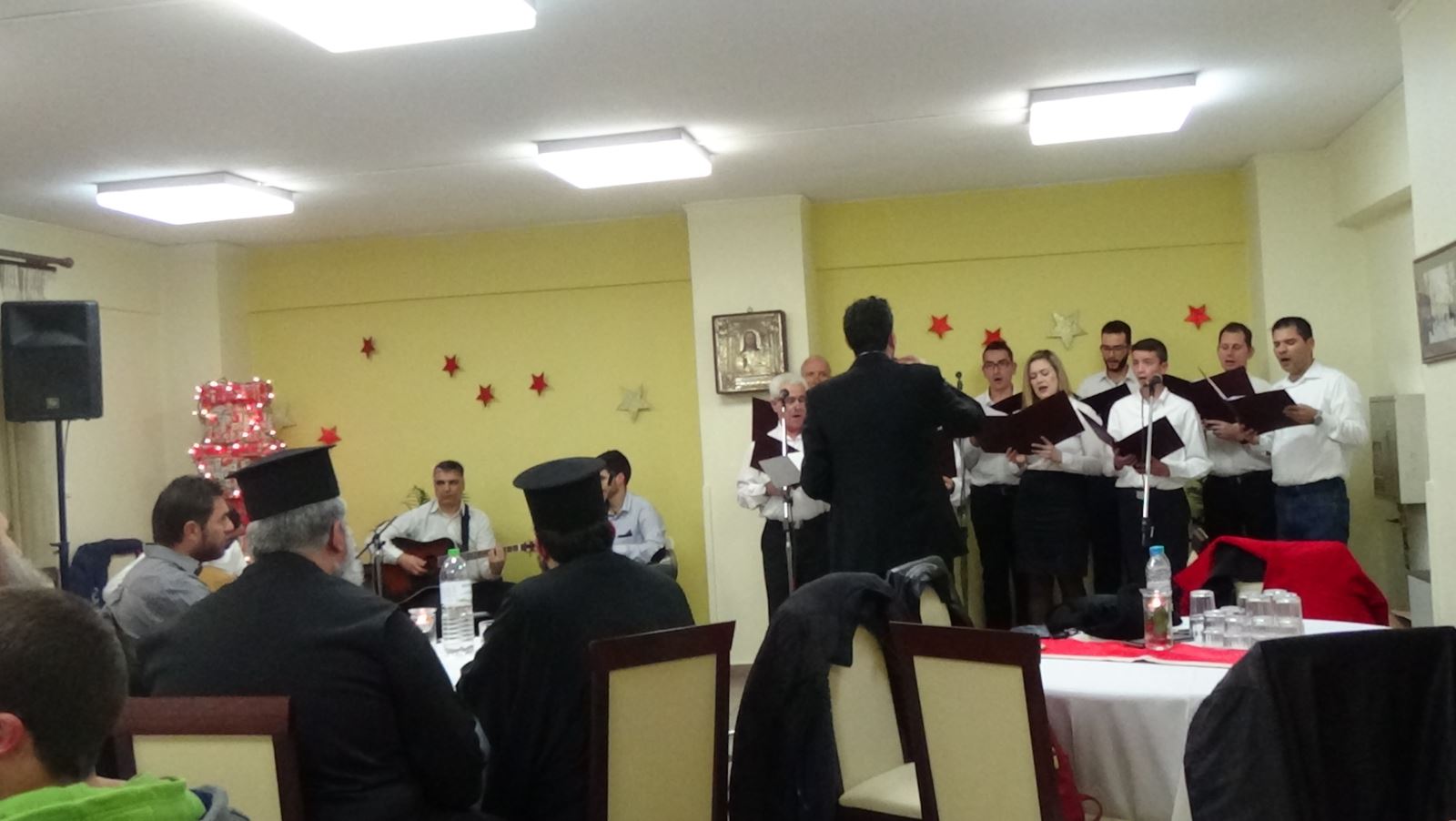 Το Σάββατο 16 Δεκεμβρίου 2017, σε άκρως εορταστικό κλίμα, οι τρόφιμοι, το προσωπικό, η Διοίκηση και οι φίλοι του Θεραπευτηρίου απολαύσαμε μία ξεχωριστή χριστουγεννιάτικη εκδήλωση που πλαισιώθηκε από τη Χορωδία της Βυζαντινής Σχολής της Ιεράς Μητρόπολης Φθιώτιδας. Η χορωδία έψαλε ύμνους και τραγούδησε κάλαντα από όλη την Ελλάδα, ενώ κατά την έναρξη ο Αρχιμανδρίτης π. Νεκτάριος Καλύβας απεύθυνε σύντομη προσλαλιά με την προτροπή να ζήσουμε τα Χριστούγεννα αληθινά μέσα στο χώρο της Εκκλησίας, μέσα από τα Άγια μυστήρια, την εξομολόγηση, τη μετάνοια και την ευχή ο Ιησούς Χριστός να είναι κοντά μας να κατευθύνει το νου μας, τα διανοήματά μας και να είναι η ζωή μας όμορφη με τη χάρη του Θεού και να έχει όραμα και νόημα.