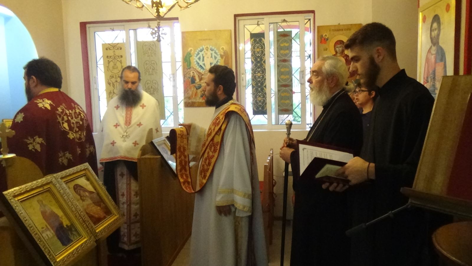 Ο Σεβασμιώτατος πλαισιούμενος από τον Αρχιμανδρίτη π. Νεκτάριο Καλύβα και άλλους ιερείς της πόλεως τέλεσε τον αγιασμό και στη συνέχεια τον πρώτο εσπερινό μέσα στο παρεκκλήσι, παρουσία του Διοικητικού Συμβουλίου του Ιδρύματος, της Διευθύντριας, των εργαζομένων, των τροφίμων και των συνοδών τους, καθώς επίσης και πολλών επισκεπτών.